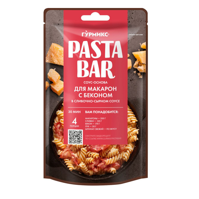 Соус-основа ГУРМИКС макароны с беконом в сливочно-сырном соусе 120 гр дой пак