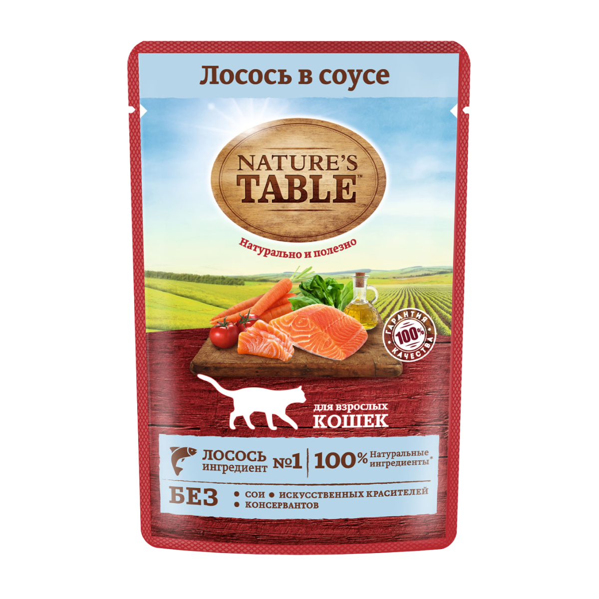 —Корм Нэчуралс Табл для кошек Лосось Соус 85гр